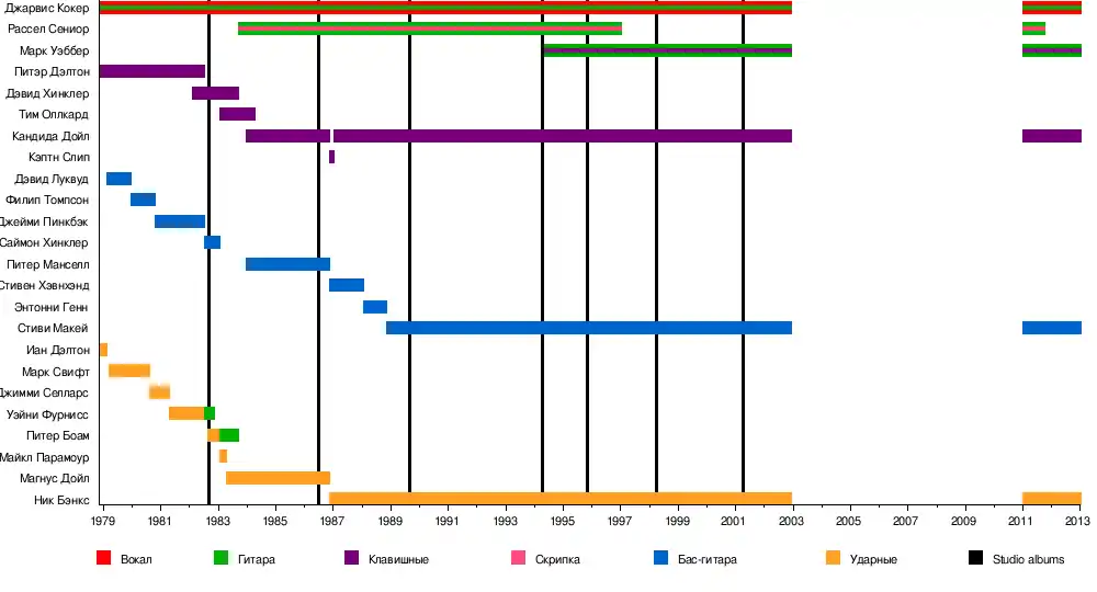 - Джарвис Кокер (Jarvis Cocker) — вокал, акустическая гитара (1978–2002, 2011–2013)
