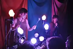 На концертах Роддик использует специально изготовленную конструкцию в форме дерева, с помощью которой он создаёт звучание и освещение на сцене[1]. Кроме того, во время выступлений оба участника облачены в одежды, специально разработанные и сшитые Меган Джеймс[1]. Она же является автором слов, хотя изначально Джеймс не собиралась представлять публике свои тексты[2].