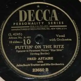 Музыка и слова песни «Puttin’ On the Ritz» были написаны Ирвингом Берлином в 1927 году. Песня впервые была опубликована в 1929 году, а в 1930 году дала название музыкальному фильму Эдварда Сломана с Гарри Ричманом (первый исполнитель песни) и Джоан Беннетт в главных ролях. В том же году «Puttin’ On the Ritz» впервые исполнил Фред Астер, это исполнение в США стало особенно популярным.