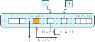 i := 0 j := 0 while Цикл генерации: i := ( i + 1 ) mod 256 j := ( j + S[i] ) mod 256 поменять местами S[i] и S[j] t := ( S[i] + S[j] ) mod 256 K := S[t] сгенерировано псевдослучайное слово K (для n = 8 будет сгенерирован один байт) endwhile