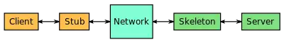 Затем метод заглушки посылает эту информацию серверу. Далее объект-получатель, скелет (skeleton), выполняет для каждого вызова удалённого метода следующие действия: