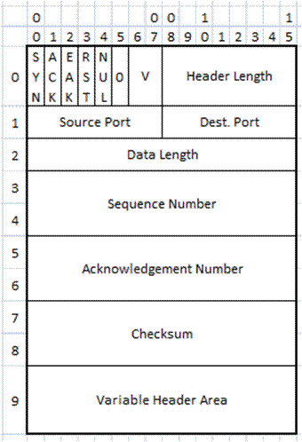 - Variable Header Area используется для передачи параметров сегментов SYN и EACK.