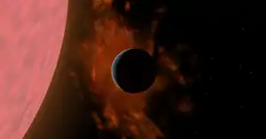 В 2009 году Wiesemeyer предположил, что квази-периодические колебания, наблюдаемые для звезды R Льва, могут быть связаны с испарением вещества околозвездного спутника, вероятно, экзопланеты. Эта планета, предположительно, имеет массу в два раза большую, чем масса Юпитера, период обращения 5,2 земного года, а расстояние до R Льва, вероятно, составляет 2,7—3 астрономических единиц. В случае подтверждения этой теории, объект вполне может быть испаряющейся планетой, с длинными кометным хвостом-следом с интенсивными выбросами типа мазера оксида кремния. Также, по расчётам, планетарная температура будет превышать 1500 кельвинов, а звёздная светимость более чем в 8000 раз больше, чем светимость Солнца.