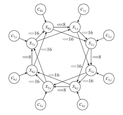 Основным компонентом шифра является генератор битового потока, который шифрует 128 битов сообщения за итерацию. Достоинство шифра в тщательном перемешивании его внутренних состояний между двумя последовательными итерациями. Функция перемешивания полностью основана на арифметических операциях, доступных на современных процессорах, то есть S-блоки подстановок и поисковые таблицы не нужны для реализации шифра.