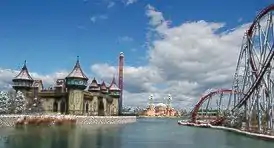 Самые примечательные аттракционы — Шок (американские горки, максимальная высота 35 м, скорость 100 км/ч достигается за 3 с), Мистика (башня свободного падения высотой 70 м), Калиостро (американские горки в закрытом помещении, скорость до 58 км/ч), Летающий остров (смотровая площадка, поднимающаяся на высоту до 50 м)
