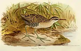 Домен: Царство: Подцарство: Без ранга: Без ранга: Тип: Подтип: Инфратип: Надкласс: Клада: Клада: Класс: Подкласс: Инфракласс: Клада: Отряд: Семейство: Подсемейство: Rallinae Род: Вид: Rallus indicus |