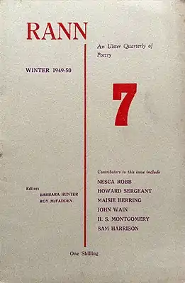 Знаковым для последующей редакторской работы в Rann Барбары Хантер стало напечатанное в Lagan, не вполне соответствуя регионализму издания, её единственное произведение на политическую тему — памфлет на правившую в Ирландском Свободном государстве партию «Фианна Файл» в форме посвящения гибели Майкла Коллинза, бывшего оппонентом её основателей[114]. Рой Макфадден придерживался противоречивого подхода: одновременно пацифистского (будучи приверженцем поэтического движения «Новый Апокалипсис», вдохновлённого творчеством Герберта Рида) и критичного к нейтралитету Ирландии. Он отвергал как сугубо гэльскую (ирландскую) линию, так и поверхностное наднациональное чувство, утверждая, что универсальное искусство часто создается в национальных рамках[115].