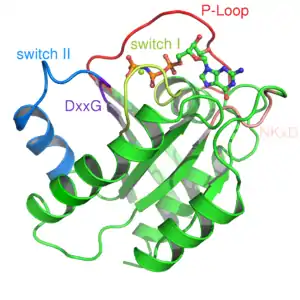 Ras — это семейство генов, а также белки, которые они кодируют — так называемые малые G-белки (малые ГТФазы). Ras являются мембраносвязанными белками, участвующими в передаче сигнала. Они осуществляют один из первых этапов передачи сигнала извне клетки и, как правило, регулируют размножение клеток. Некоторые мутации могут приводить к постоянной активации Ras, что нарушает регуляцию деления клеток. Ошибки в регуляции Ras могут привести к росту опухоли и метастазированию[1]. Действительно, в 20—25% опухолей человека обнаружены мутации в гене Ras, повышающие его активность, а в некоторых типах опухолей эта цифра доходит до 90%[2]. Суперсемейство белков Ras представляет собой малые ГТФазы и включает в себя Ras, Rho, Arf, G-белок Rab и Ran.