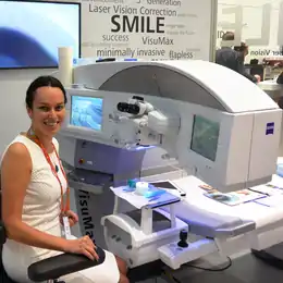 - Использование фемтосекундной лазерной технологии. ЛКЗ SMILE базируется на передовой фемтосекундной лазерной технологии формирования роговичного клапана. Применяемый фемтосекундный лазер VisuMax формирует лазерное излучение в виде очень коротких сжатых импульсов, тем самым достигается высокий уровень плотности энергии[39][40].