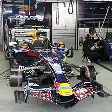 Red Bull RB3 Култхарда в гараже на Гран-при США 2007 года