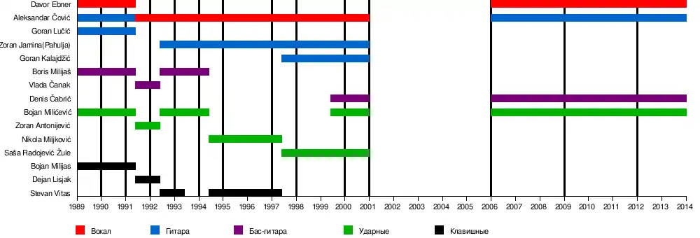 Четыре друга, Александар Чович (Aleksandar Čović), Борис Милияш (Boris Milijaš), Боян Милияш (Bojan Milijaš) и Горан Лучич (Goran Lučić), в 1989 году решают основать собственную любительскую музыкальную группу. Единственное, чего не хватало группе для начала работы — хороший вокалист. Группа публикует в газетах объявление о прослушивании, но поиски не приносят желаемого результата — отдельные кандидаты даже приходят с чужими записями, выдавая их за свои, чтобы попасть в группу. Участники группы находят Давора Эбнера (Davor Ebner), который в тот момент поет в группе Konvoj («Конвой»). После долгих переговоров, длившихся три месяца, Давор соглашается петь в группе. Чуть позже к группе присоединяется Боян Миличевич (Bojan Miličević).