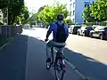 По улице проходит наиболее удобный и короткий велосипедный путь из Бенрата в центр Хильдена. Для этого на въезде в улицу и на выезде установлена соответствующая велосипедная маркировка. Таким образом, Райсхольцштрассе является частью транзитного междугороднего велосипедного пути. На самой улице только в офисной зоне имеется велодорожка, на остальном пространстве велосипедисты используют проезжее полотно улицы.