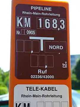 - Продуктопровод Венло — Франкфурт на Майне. Труба проложена на глубине 4 метра, направление движения продуктов (cупербензин, бензин, дизель, лёгкое отопительное масло, авиационный керосин JetA1, сырой бензин (нафта) с севере на юг. Эти нефтепродукты пропускаются по трубопроводу порциями.