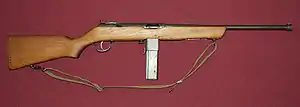 Более редкими были самозарядные карабины, не имевшие режима автоматического огня, — М60 под .45 ACP и тренировочный вариант М65 под патрон .22 LR. Оба имели удлинённый ствол.