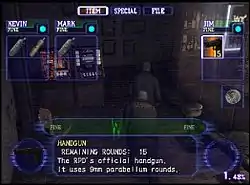 - Кевин Райман — работает в полицейском департаменте города Раккун-сити. Имеет отличную атлетическую подготовку и достаточно метко стреляет. Хороший человек и закоренелый оптимист, который «не заморачивается по мелочам». Дважды проваливал вступительный экзамен в S.T.A.R.S. Любимое место отдыха — J’s Bar, куда он заходит практически каждый вечер.