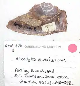 Rheodytes devisi (лат.) — вид вымерших черепах из семейства змеиношеих, существовавших в плейстоцене на территории Австралии. Был описан по материалам, первоначально включенным в описание другой ископаемой черепахи — Elseya uberima[1].