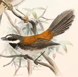 | Consensus phylogeny tree of a clade within the fantails (Rhipiduridae) according to Nyári et al. (2009)[4] |