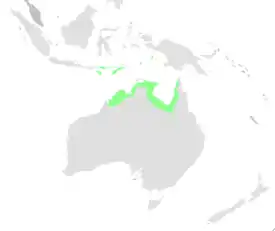 Населяет Малые Зондские острова, северное побережье Австралии от Кимберли до западной части полуострова Кейп-Йорк, включая прибрежную часть Топ-Энд Северной территории Австралии и юг Новой Гвинеи.