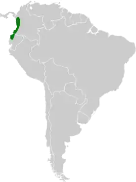 Обитают в Южной Америке, на территории Колумбии и Эквадора. Естественной средой обитания этих птиц являются субтропические или тропические влажные равнинные леса.
