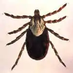 Rickettsia rickettsii передаются двумя видами клещей: Dermacentor andersoni и Dermacentor variabilis. Симптомы появляются спустя 3—12 сутки после укуса инфицированным клещом. Они включают лихорадку, сильную головную боль, внезапный озноб. Почти всегда на 2—6-е сутки лихорадки появляется сыпь — пятнистые розовые высыпания на кистях, в области голеностопных суставов, ладоней, подошв и предплечий. Летальность составляет 7 %.