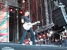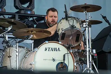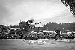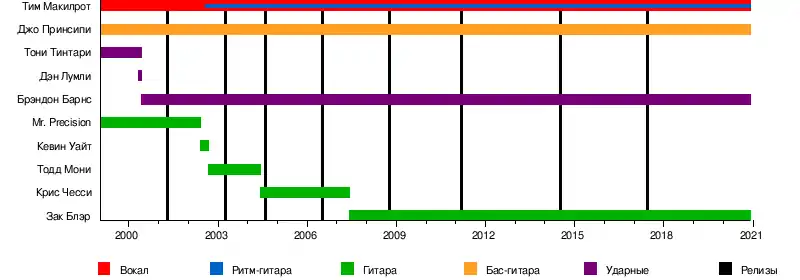 ![]() Rise Against на Rock Am Ring в 2018. Слева направо: Зак Блэр, Брэндон Барнс (на ударных), Тим Макилрот, Джо Принсипи | |