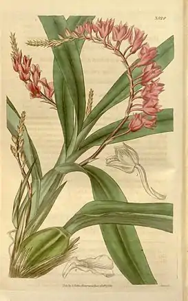 Rodriguezia lanceolata из книги The botanical register vol. 11 pl. 830, 1825 г.