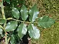 Листья тёмно-зелёные, глянцевые, крупные (12—13 × 8—10 см), листочков 5—7[3].