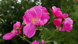 Цветки розовые, полумахровые, 7—8 см в диаметре.