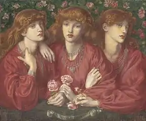 Тройные портреты являются давней традицией в истории искусства, их заказывали король Карл I и кардинал Ришельё для того, чтобы впоследствии по ним могли работать скульпторы[1]. Россетти был знаком с этими известными работами Антониса Ван Дейка и Филиппа де Шампаня, но его тройные женские портреты несут иную цель — показать красоту одной женщины в различных ракурсах[1]. В то же время, работа несёт в себе ассоциацию с мифологическими женщинами — тремя грациями и тремя мойрами[1]. Тематика тройственности не впервые находит отражение в творчестве Россетти, в 1852 году он создал эскиз картины «Три Марии у подножия креста», в 1854 — «Девы эльфийского народа», иллюстрацию к балладе Вильяма Аллингама с тремя эльфийками[1].