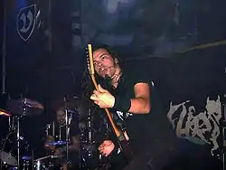 ![]() Солист группы Сакис Толис во время выступления Rotting Christ на фестивале Barge to Hell в 2012 году | |