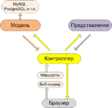 Представление создаёт пользовательский интерфейс с использованием полученных от контроллера данных. Представление также передает запросы пользователя на манипуляцию данными в контроллер (как правило, представление не изменяет непосредственно модель).