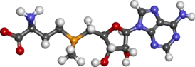 S-аденозилметионин (SAM, SAMe, SAM-e, адеметионин) — это кофермент, принимающий участие в реакциях переноса метильных групп. Впервые был описан Джулио Кантони в 1952 году[1]. Молекулярная масса 399,447 г/моль. S-аденозилметионин образуется из АТФ и метионина ферментом метионинаденозилтрансферазой. EC 2.5.1.6. В клетке участвует в таких метаболических путях, как трансметилирование, транссульфирование и аминопропилирование. И хотя эти анаболические реакции идут во многих тканях организма, большая часть S-аденозилметионина образуется в печени[1].