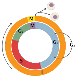 Главной контрольной точкой в регуляции клеточного цикла является переход от G1-фазы к S-фазе. В зависимости от количества питательных веществ и энергии, а также от внешних факторов клетка принимает решение — вступать в клеточный цикл или же перейти в неделящееся состояние, известное как G0-фаза. Этот переход, как и все контрольные переходные точки в клеточном цикле, запускается циклинами и циклин-зависимыми киназами. Активация G1/S-циклинов запускает CLN3-циклин-зависимую киназу, активирующую Cln1/2 и Clb5/6 в ходе инициации S-фазы. Этот путь включает 2 положительных обратносвязанных цикла, допускающих быстрый, однонаправленный переход в S-фазу. Такие на первый взгляд сложные и избыточные пути, тем не менее, не являются редкими, так как позволяют более тонко регулировать выходные сигналы системы и часто приводят к ускорению эволюции[2].