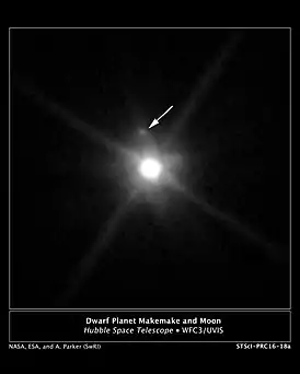 ![]() Изображение планеты Макемаке и её спутника, полученное с телескопа Хаббла | |