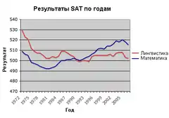 В 2002 году Ричард Роштейн (учёный и журналист) написал статью в «New York Times» о росте средних результатов по математике в «SAT» и «ACT», при том как средние лингвистические результаты оставались примерно одинаковыми.[11] Первое и пока[когда?] единственное исследование данной темы провел James Lech, Ed.D. и M.T.S. Изначально исследователь предположил, что причиной роста показателей по математике является упрощение вопросов теста за последнее десятилетие. Данное предположение им было исследовано с участием 1500 произвольно выбранных квалифицированных школьных учителей математики. Однако результаты не подтвердили изначальное предположение: в большинстве случаев было выявлено, что вопросы по математике за последние годы становились даже немного сложнее.