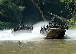 Для высадки надводным способом ССО ВМС США могут использовать патрульные катера типов «Циклон», Мк 5 «Пегас»[2], RIB-36[16][17] и Special Operations Craft-Riverine (SOC-R), которые находятся в составе отрядов катеров СпН (Special Boat Team). Лодки типа SOC-R также могут быть транспортированы вертолётами CH-47 и CH-53.