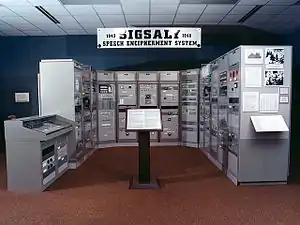 Чтобы исправить ситуацию в 1936 году Bell Telephone Laboratories (BTL)[1][3] начала изучать технику преобразования голосовых сигналов в цифровые данные, которые затем могут быть восстановлены (или синтезированы) понятным голосом. Он назывался «вокодером», коротким для голосового кодера.[что?] Однако, сотрудники BTL вскоре обнаружили, что система не обеспечивала достаточной степени защиты для передачи данных. BTL приступила к самостоятельному развитию этой технологии и 15 июля 1943 года система SIGSALY была официально введена в действие.