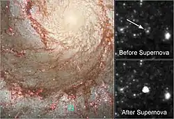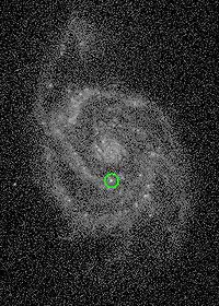 ![]() Сверхновая SN 2005cs. Фото космического телескопа Swift. | |