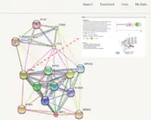 STRING (сокр. от англ. Search Tool for the Retrieval of Interacting Genes/Proteins) — база данных и веб-ресурс для поиска информации об известных и предсказанных белок-белковых взаимодействиях[1][2][3][4][5][6][7][8].