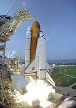 Через 8,5 минут шаттл вышел на первоначальную орбиту высотой 105 км (65 миль) (орбита слишком низкая, уточните) и двигатели шаттла были выключены.