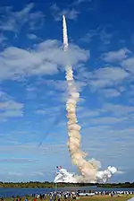 16 ноября 2009 г. Шаттл «Атлантис» стартовал в 19 часов 28 минут по Гринвичу (14 часов 28 минут по времени восточного побережья США). Через 90 секунд после старта, вес шаттла составлял только половину от его стартового веса. Твердотопливные ускорители сжигают 335 кг (11.000 фунтов) топлива в секунду. Двигатели самого шаттла сжигают около 500 кг жидкого топлива в секунду.