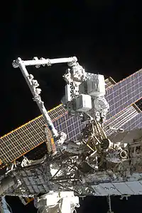 Астронавты подвели робот-манипулятор ко второй экспериментальной платформе (ELC-2), которая будет на следующий день будет установлена на сегменте S3 станции.