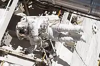 Во время полёта было осуществлено три выхода в открытый космос.