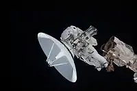 Аккумуляторы, запасные части для канадского робота-манипулятора и антенна Ku диапазона были размещены на транспортной платформе, на которой находилась в грузовом отсеке шаттла.