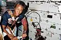 Гай Bluford упражнения на середине палубы беговой дорожке, а на орбите.