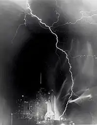 Удар молнии вблизи стек орбитального, за несколько часов до старта