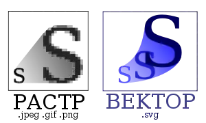- Масштабируемость — SVG является векторным форматом. Существует возможность увеличить любую часть изображения SVG без потери качества. Дополнительно, к элементам SVG-документа возможно применять фильтры — специальные модификаторы для создания эффектов, подобных применяемым при обработке растровых изображений (размытие, выдавливание, сложные системы трансформации и др.). В тексте SVG-кода фильтры описываются тегами, визуализацию которых обеспечивает средство просмотра, что не влияет на размер исходного файла, обеспечивая при этом необходимую иллюстративную выразительность.