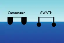 SWATH (англ. Small Waterplane Area Twin Hull, двухкорпусное судно с малой площадью сечения по ватерлинии) — специальная форма корпуса кораблей, в которой расположенная над водой платформа стоит на двух понтонах на нескольких (к примеру, четырёх) опорах, которые образуют минимальную площадь сечения по ватерлинии; маловосприимчива к морским волнениям (качке).