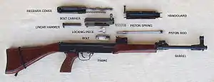 CZ Sa vz. 58 (чеш. Samopal vzor 58, автомат образца 1958 года[4]) — чехословацкий автомат. Внешне напоминающий автомат Калашникова, Sa vz. 58 использует другой принцип работы автоматики, и никакие детали АК, включая магазины, с этим автоматом несовместимы[5].