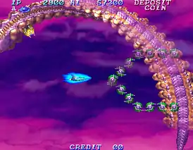 Из нововведений можно отметить «option shot». Есть 2 вида спутника — маленький, крутящийся вокруг корабля, стреляющийся стандартными пулями (option seed), и большой, стреляющий тем же оружием, что и кораблик (option). Игроки могут использовать option, как большой снаряд, и option seed как лимитное (одна секунда) большое защитное поле. Два «option seed» образуют один «option». Игра является двухмерной, но в ней активно фигурируют спрайтовые и 3D объекты. Чем дольше игрок находится в игре, тем выше поднимается её сложность. Она сбрасывается после погибели кораблика.